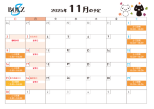 11月の営業スケジュール お知らせ 2025.12.01 2025.11.01 11月の営業スケジュールです。 月初めの2日が臨時休業となっておりますのでご確認お願い致します。 寒くなってまいりましたが店内暖かくしてお待ちしております。
