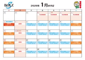 1月の営業スケジュールです。